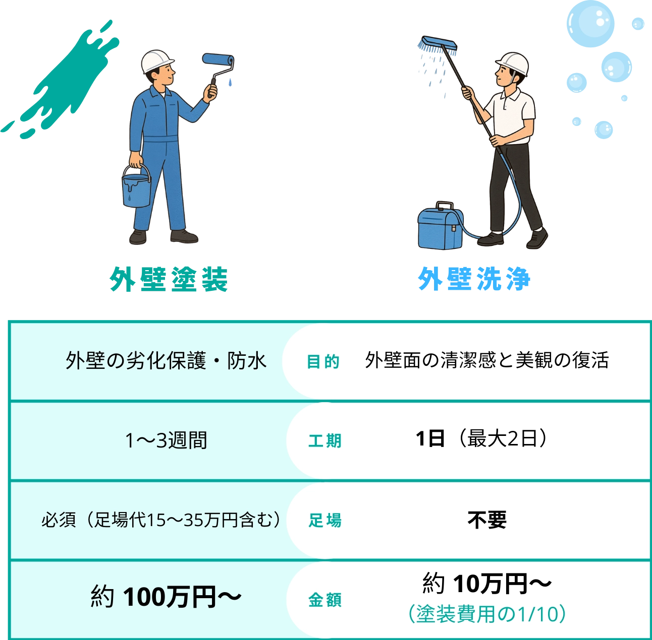 Renova Houseの外壁洗浄は、一般的な外壁塗装と比べて